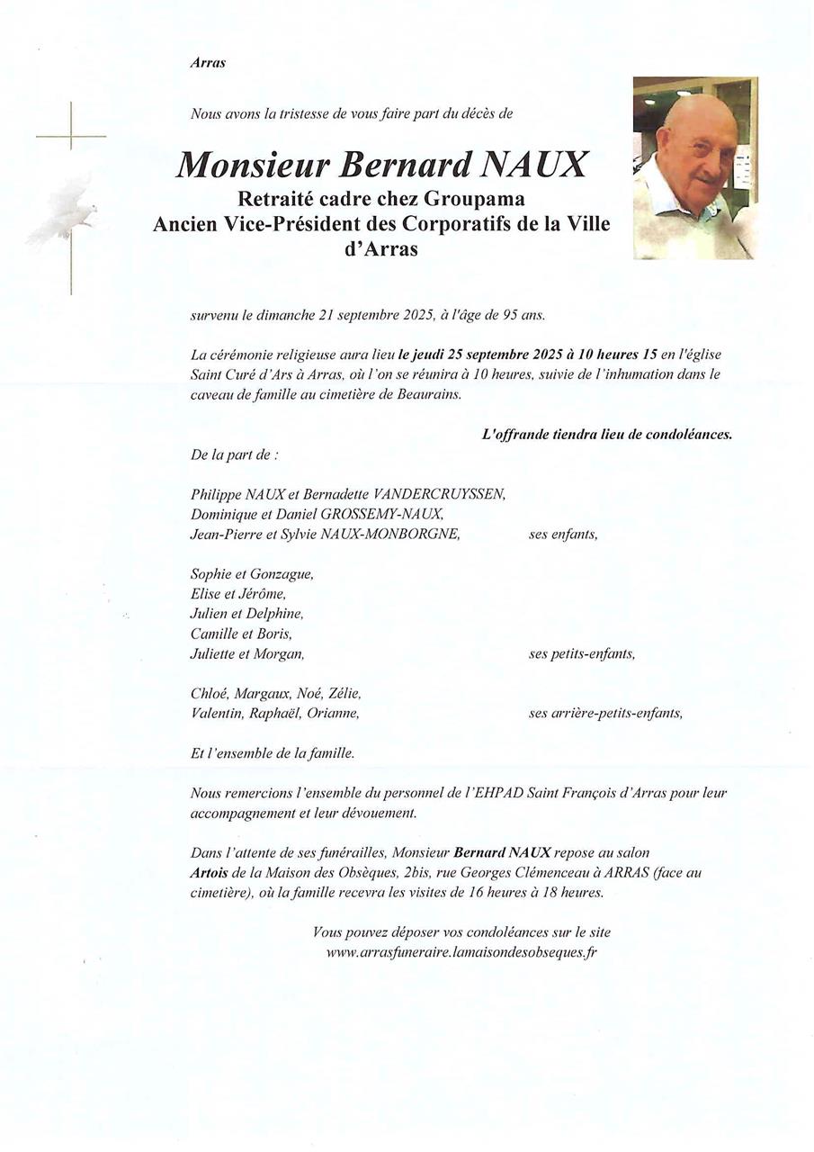 Décédé à Arras (62000, France) le dimanche 21 septembre 2025 à l'âge de 95 ans