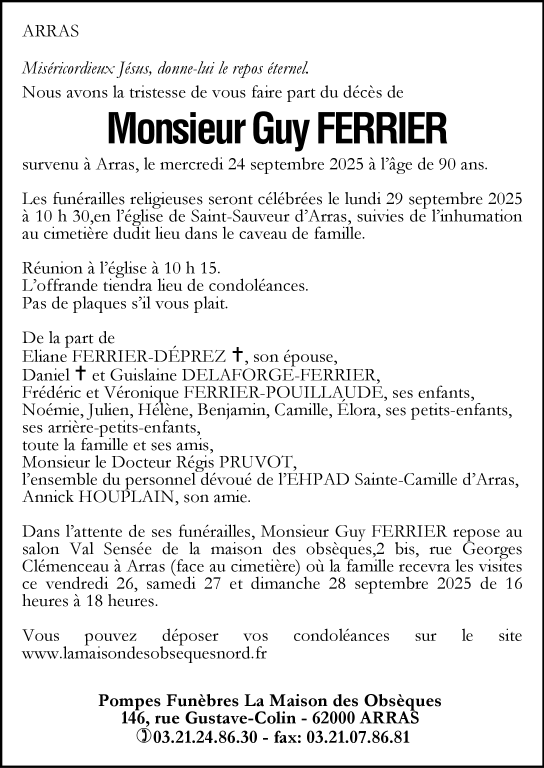 Décédé à Arras (62000, France) le mercredi 24 septembre 2025 à l'âge de 90 ans