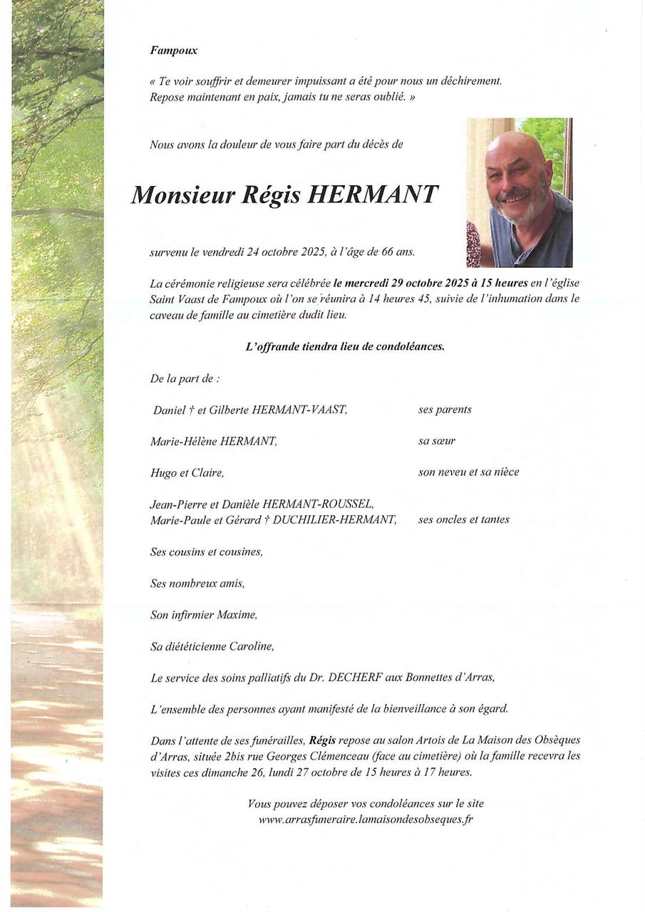 Décédé à Arras (62000, France) le vendredi 24 octobre 2025 à l'âge de 66 ans
