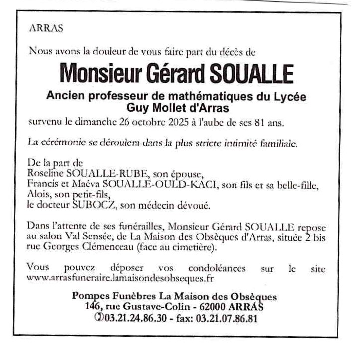 Décédé à Arras (62000, France) le dimanche 26 octobre 2025 à l'âge de 80 ans