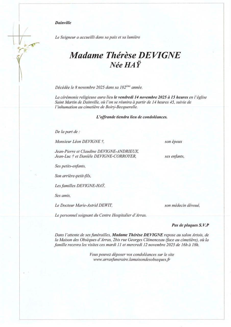 Décédée à Arras (62000, France) le samedi 8 novembre 2025 à l'âge de 101 ans