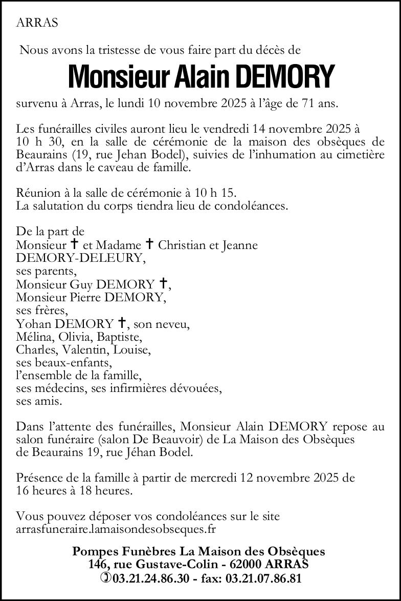 Décédé à Arras (62000, France) le lundi 10 novembre 2025 à l'âge de 71 ans