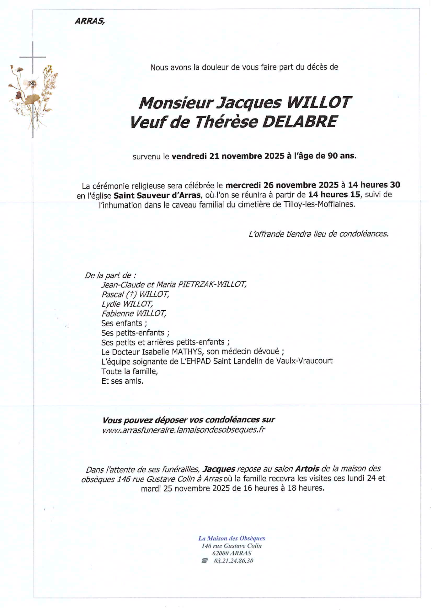 Veuf de Madame Thérèse WILLOT