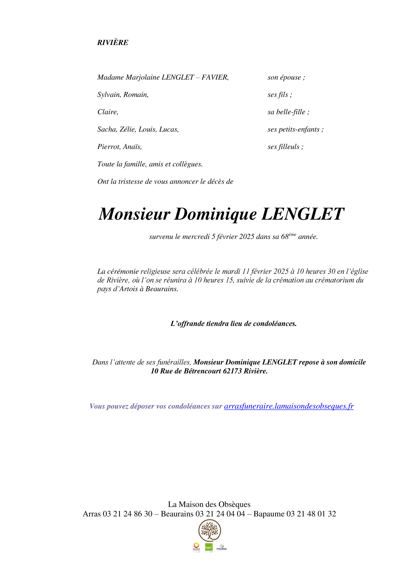 Décédé à Arras (62000, France) le mercredi 5 février 2025 à l'âge de 68 ans