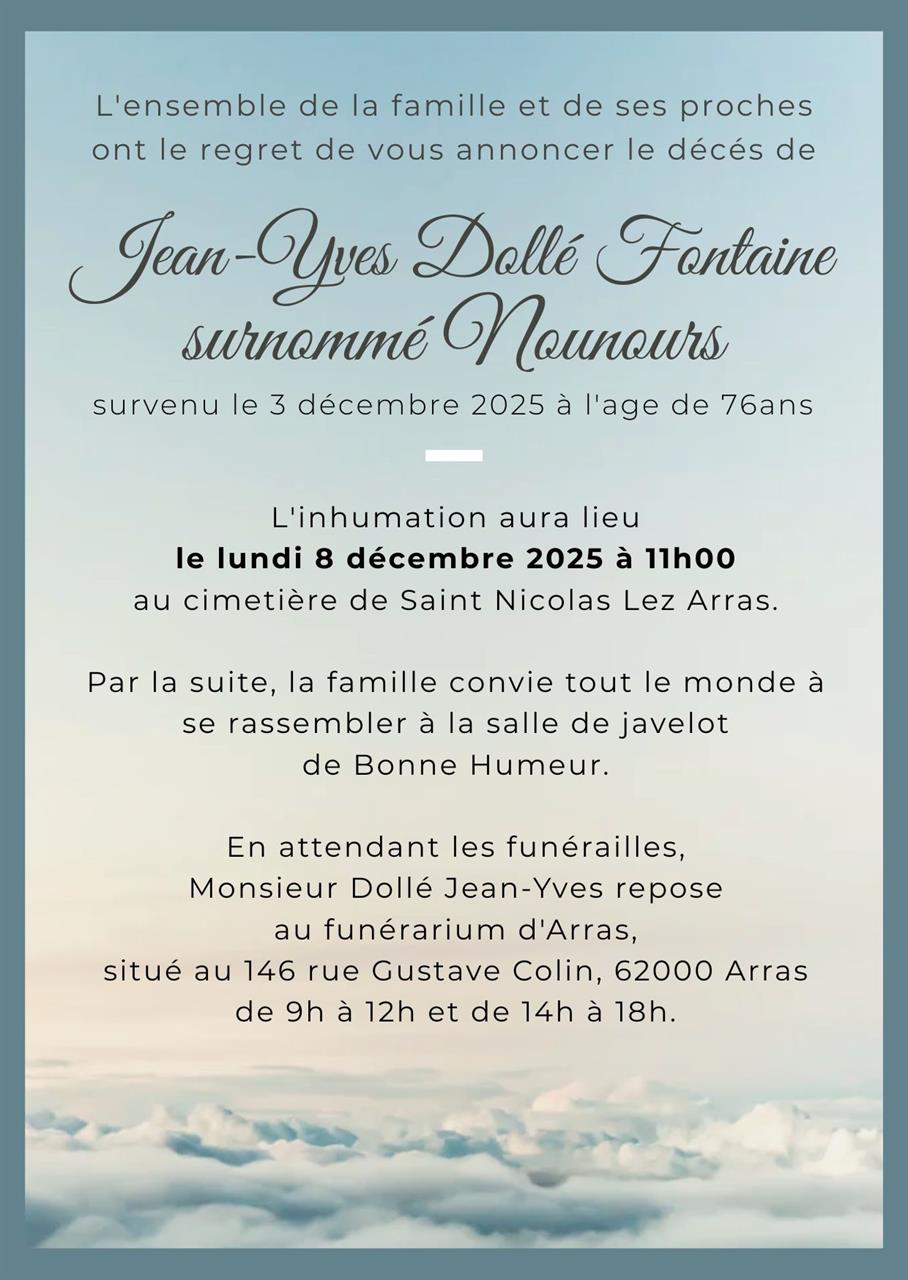 Décédé à Arras (62000, France) le mercredi 3 décembre 2025 à l'âge de 76 ans
