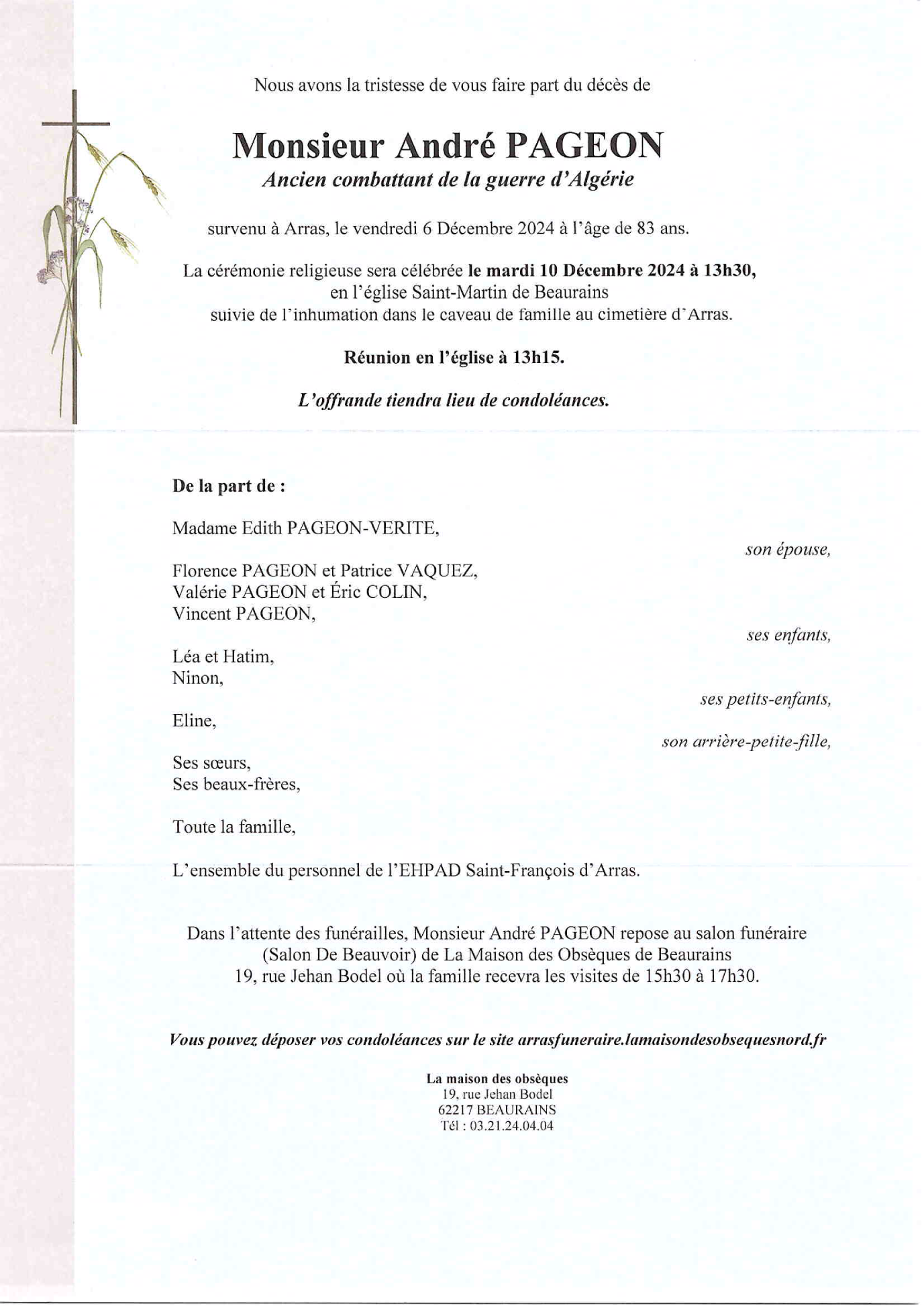 Décédé à Arras (62000, France) le vendredi 6 décembre 2024 à l'âge de 83 ans