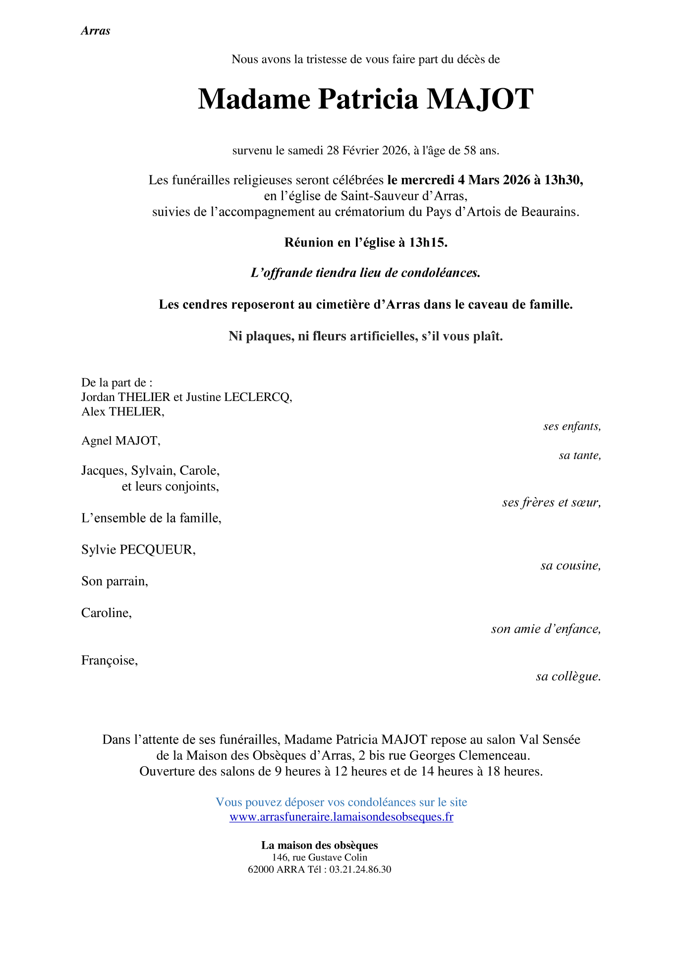 Décédée à Saint-Laurent-Blangy (62223, France) le samedi 28 février 2026 à l'âge de 58 ans