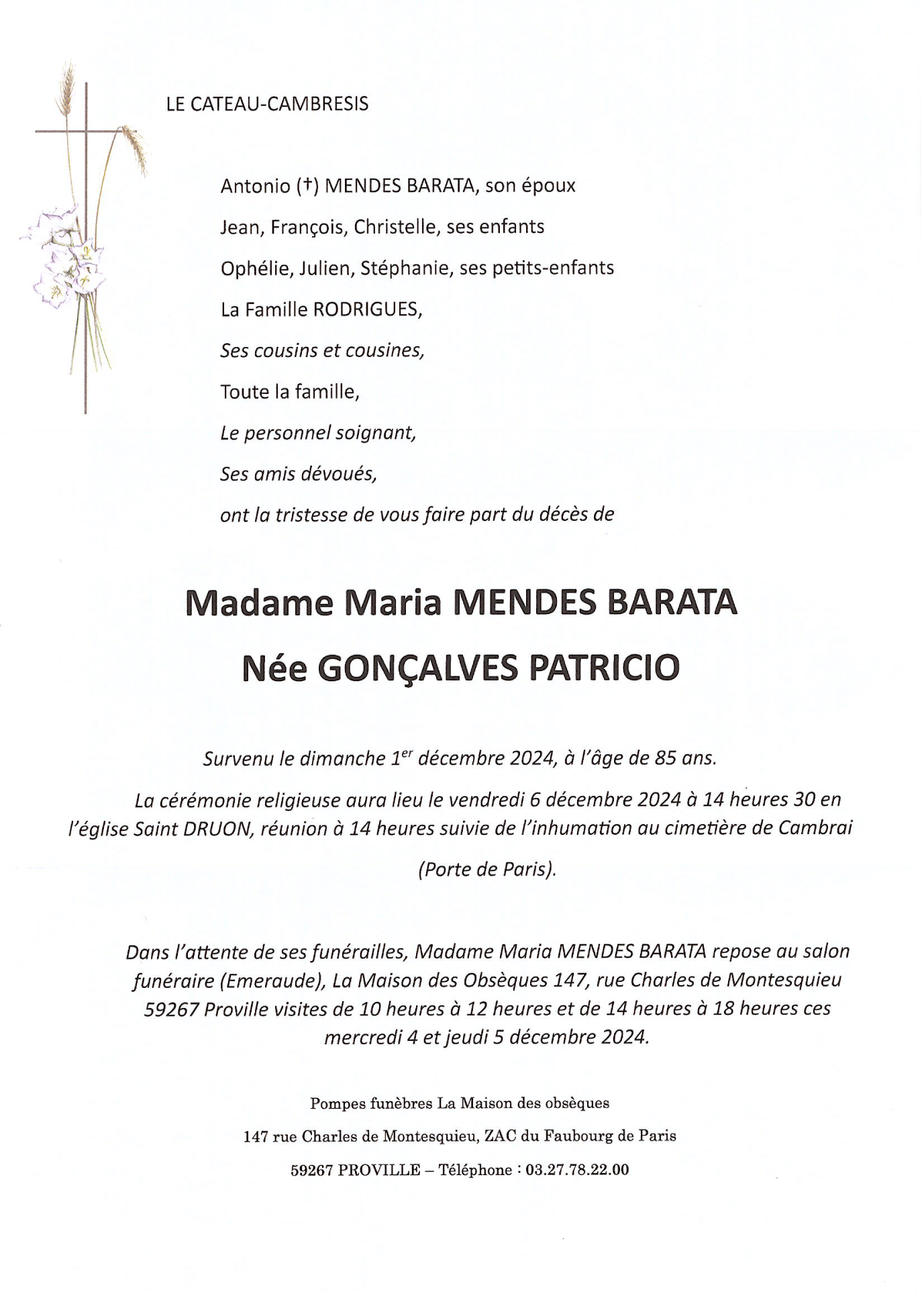 Madame Maria MENDES BARATA née GONCALVES PATRICIO