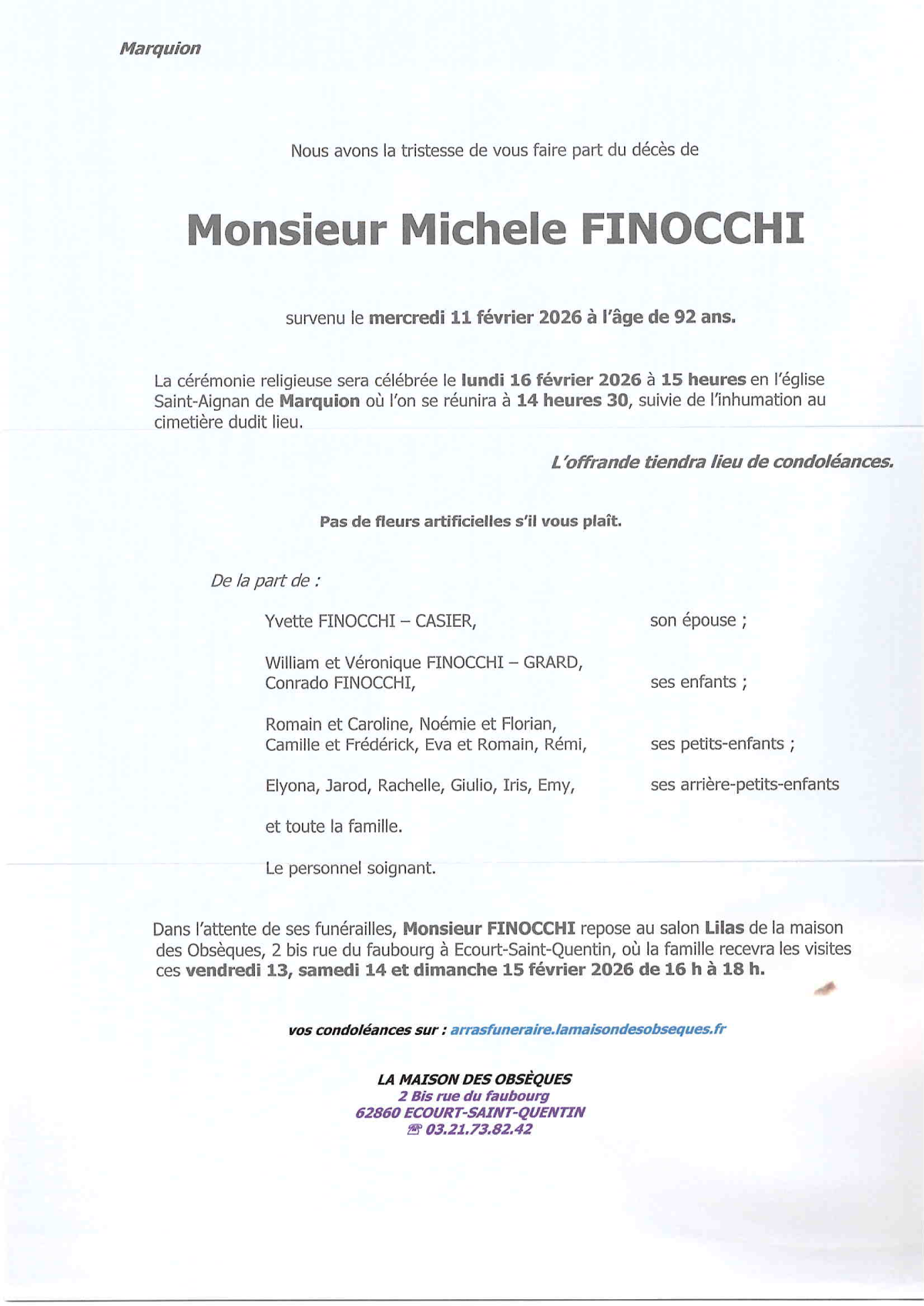 Décédé à Marquion (62860, France) le mercredi 11 février 2026 à l'âge de 92 ans