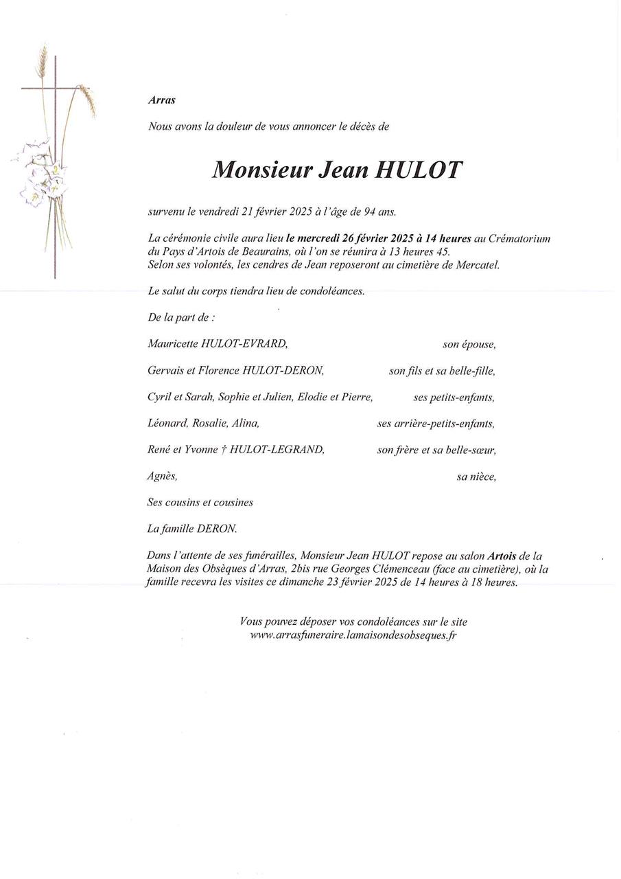 Décédé à Arras (62000, France) le vendredi 21 février 2025 à l'âge de 94 ans