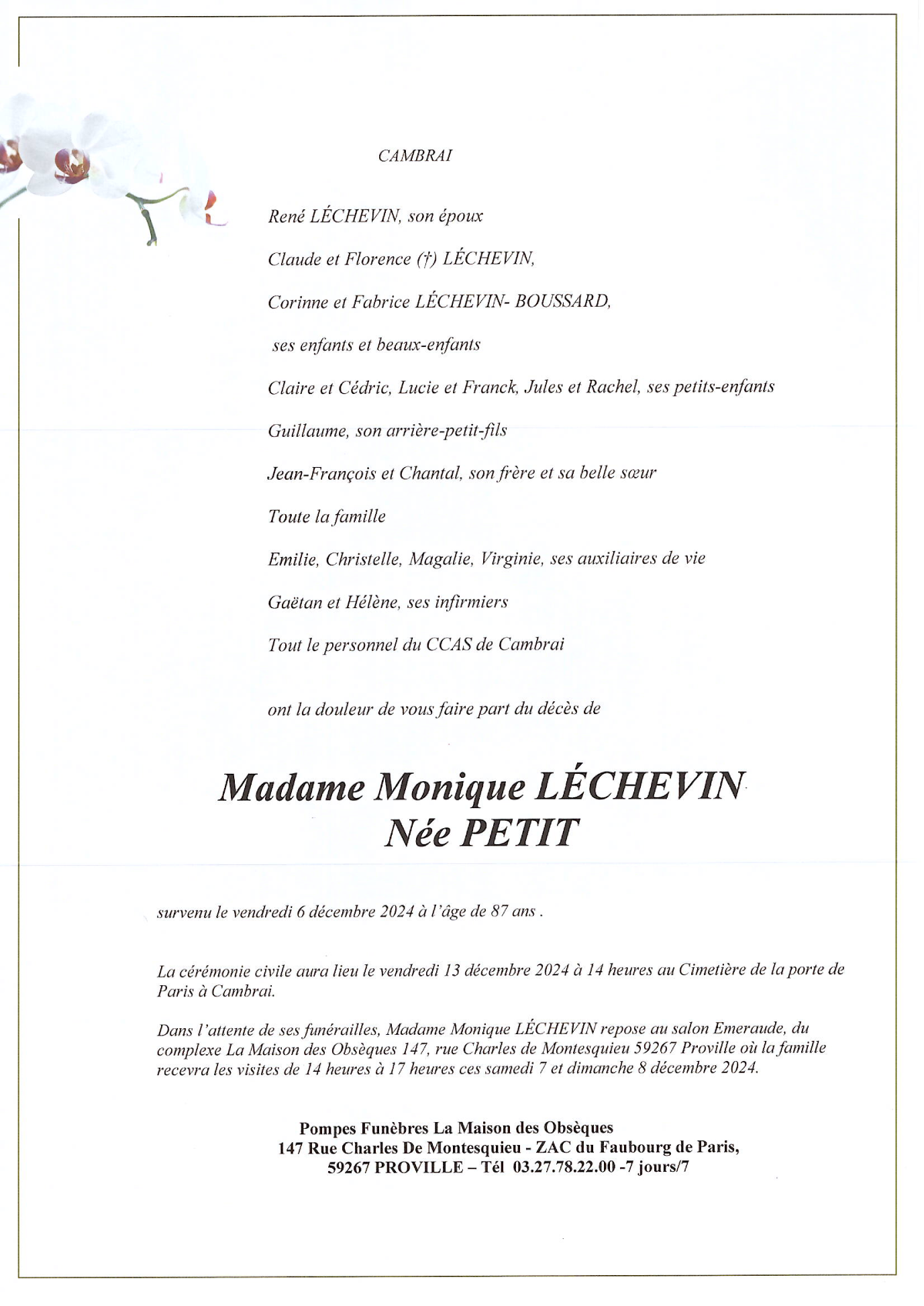 Madame Monique, Henriette, Marion LÉCHEVIN née PETIT