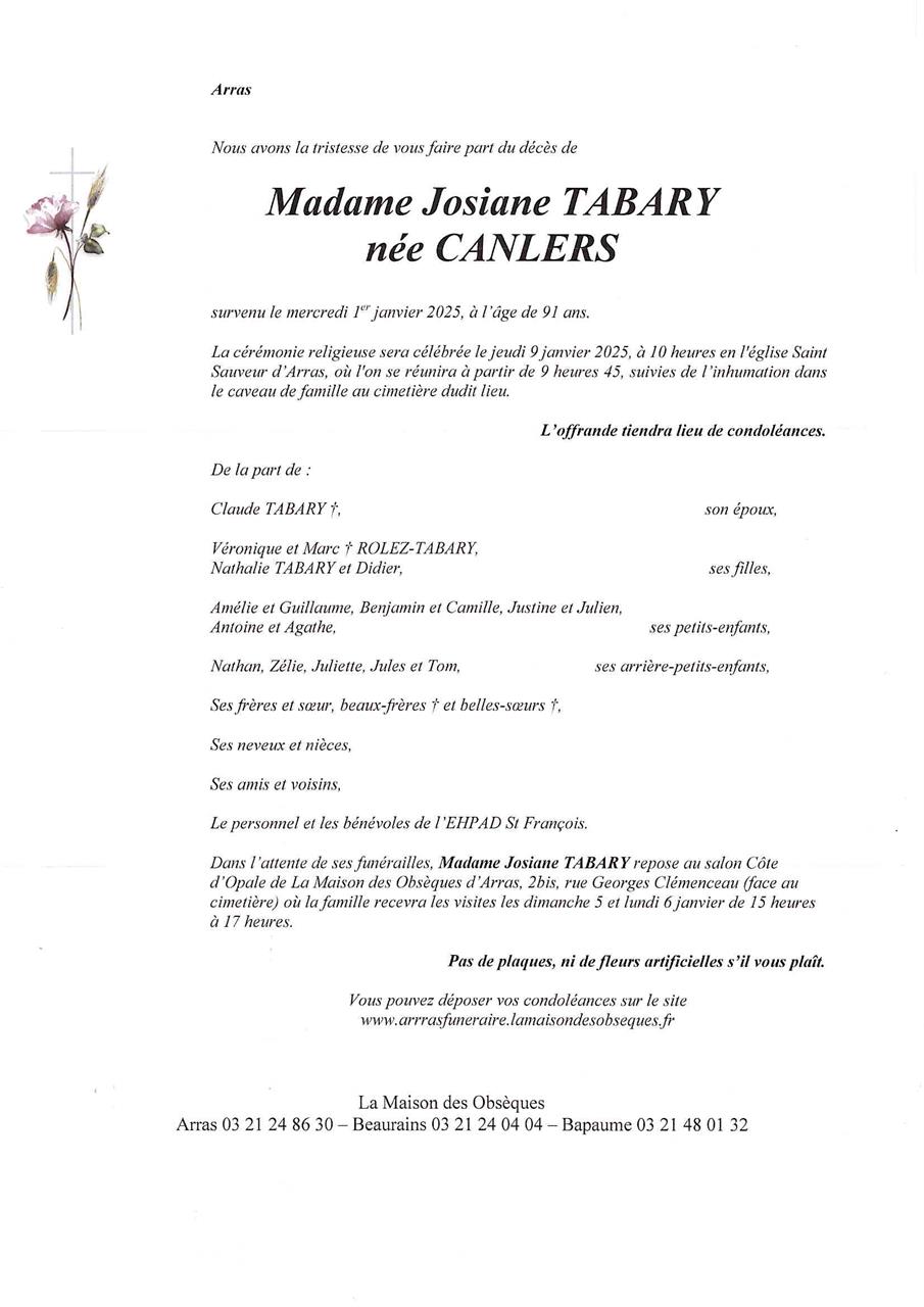 Madame Josiane TABARY née CANLERS 1933 - 2025