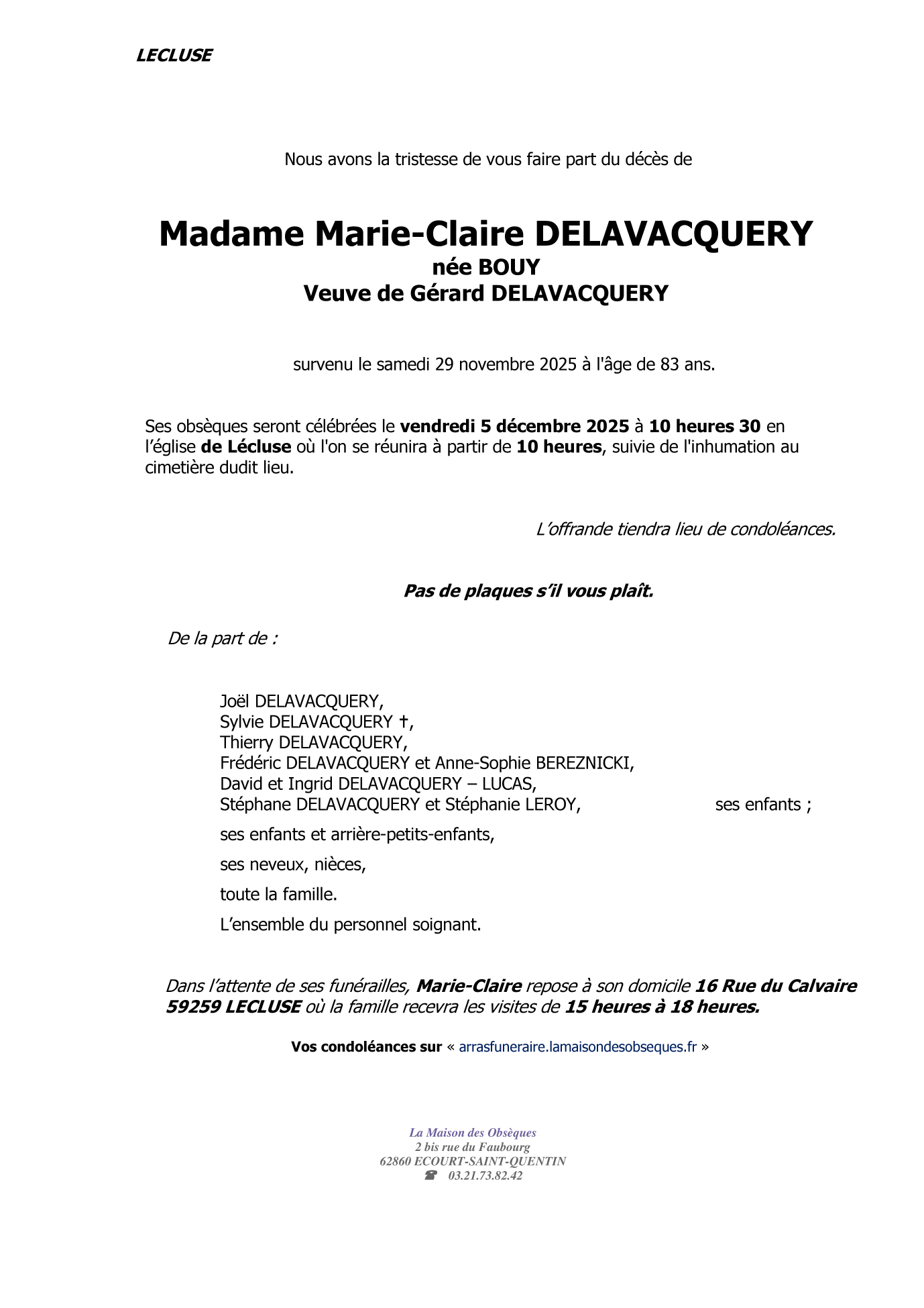Madame Marie-Claire DELAVACQUERY née BOUY