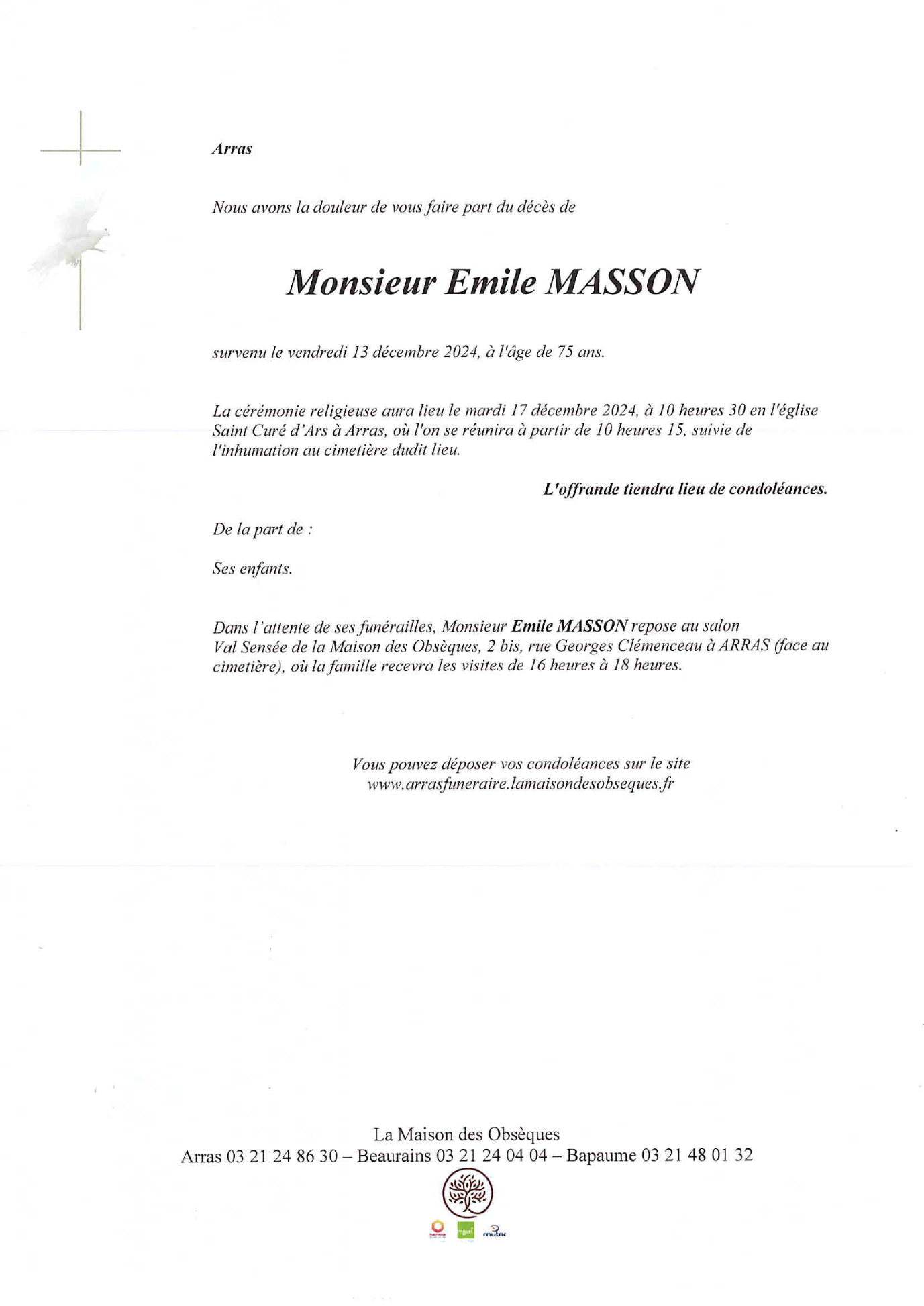 Monsieur Emile MASSON 1949 - 2024